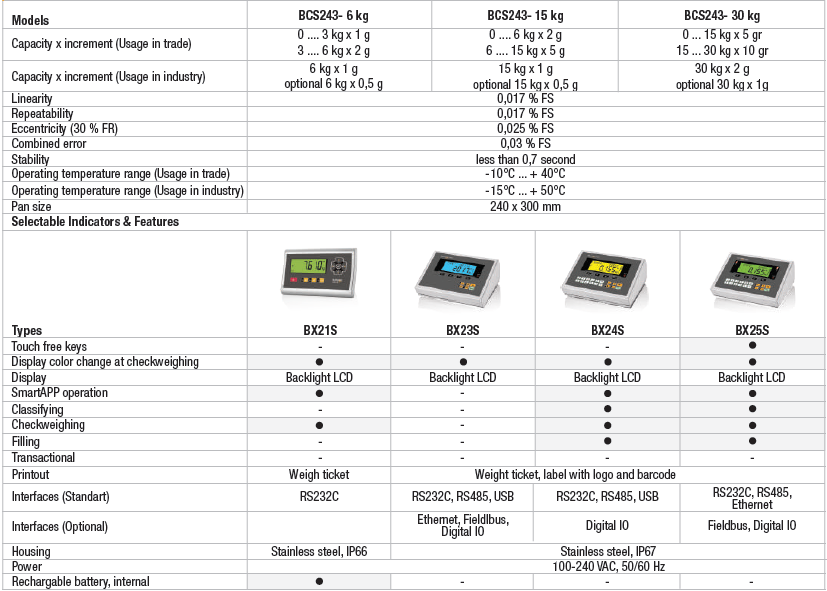 The precise and approved Baykon BCS243 Series Bench Scales are designed to use in meat, fish, frozen food, catering, fruit and vegetable processing and packing lines as well as chemical industry and all other harsh industries.