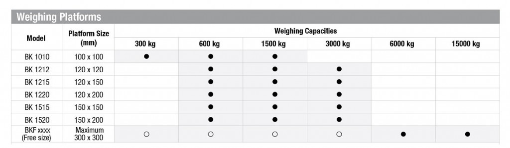 They are available from 300 kg to 15000 kg capacities with sizes up to 150x200 cm as various standard sizes and free sizes according to customers' requests. Depending on the working environment; static painted, galvanised and full stainless steel models can be selected.