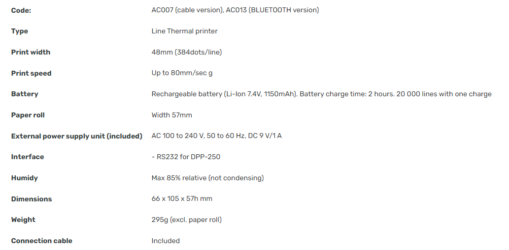 DPP-250 printer is a small footprint portable printer that can be used with BEL laboratory balances. Weight values are printed quickly and sharply.