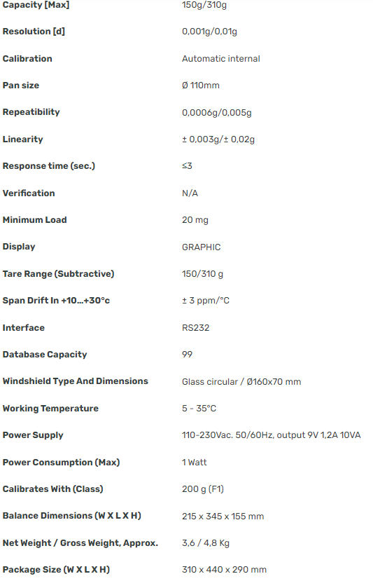 Resolution: 0,001g/0,01g