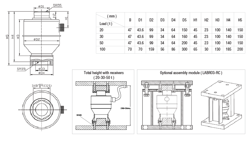 BR030SD digital load cells are designed to use mainly for vehicle scales and similar heavy-capacity weighing applications. It is a compression type load cell with an integral rocker-pin design that automatically aligns load forces for accurate weighing. With its stainless steel, IP68 hermetically sealed enclosure, it can be used safely in harsh environments.