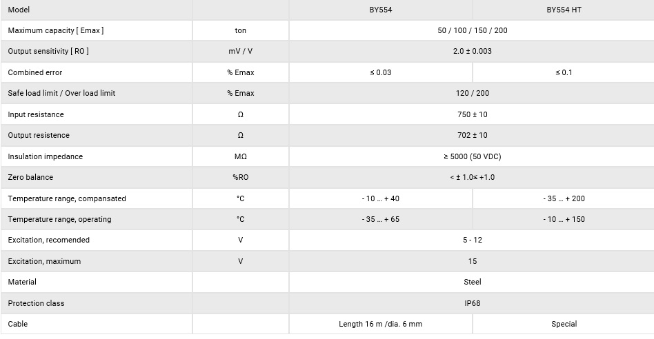 Type BY554 is a special type, steel construction double ended shear beam loadcell and has been specifically designed for the high fatique stresses, on board weighing, ship and melting top weighing, etc. applications.
