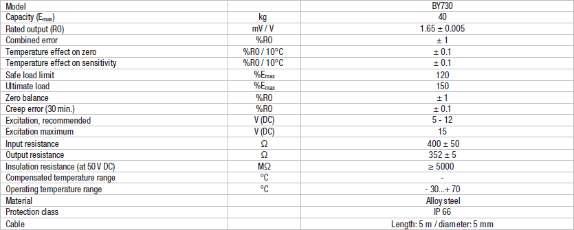 Baykon BY730 extensometer is designed for silo inventory monitoring. The sensor measures the elastic deformation that occurs in the support legs of a silo. It features a low activation force and a high-gain analogue output, perfect for measuring forces in rigid structures.