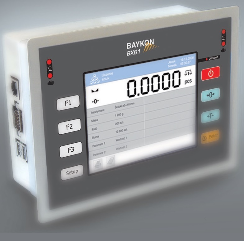 BX61 terminal offers simultanous operation up to 2 weighing platforms and precision balances, barcode scanners, magnetic card readers, recipe and label printers, external PC keypad and mouse, external buttons, relays and PLCs over parallel I/Os.